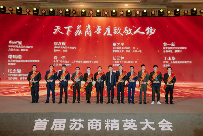 在“2022年度天下蘇商系列評(píng)選活動(dòng)”中,集團(tuán)創(chuàng)始人任元林先生(左三)榮獲“天下蘇商年度致敬人物”稱(chēng)號(hào)。