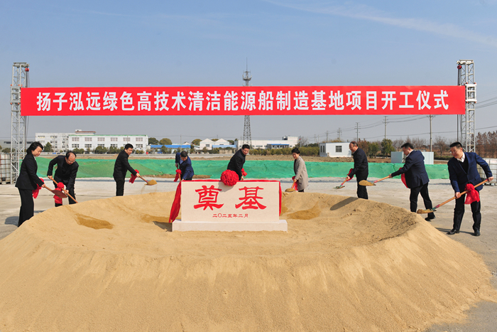 2月19日,揚子泓遠綠色高技術清潔能源船制造基地項目(以下簡稱“揚子泓遠項目”)舉行奠基儀式,正式開工建設。靖江市委副書記、市政府市長申強主持儀式并致辭,我集團董事長、總經(jīng)理任樂天現(xiàn)場致辭。泰州市委書記姜冬冬宣布項目開工。泰州市委副書記、市長萬聞華,市委常委、常務副市長沈峻峰,市政府秘書長包亞,靖江市政府、人大、政協(xié)主要負責同志出席儀式,并為揚子泓遠綠色高技術清潔能源船制造基地項目培土奠基。