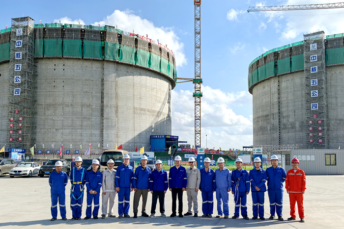 該項目單臺LNG儲罐拱頂重量達(dá)463噸,氣壓頂升作業(yè)屬超過一定規(guī)模的危險性較大的分部分項工程,技術(shù)難度與風(fēng)險管控要求極高。集團(tuán)統(tǒng)籌資源,聯(lián)合中國五環(huán)工程有限公司、中國核工業(yè)第五建設(shè)有限公司,通過對氣頂升五大核心系統(tǒng)聯(lián)合檢查驗收和全流程精準(zhǔn)調(diào)控,最終實現(xiàn)拱頂安全平穩(wěn)就位,充分體現(xiàn)了集團(tuán)在大型能源基礎(chǔ)設(shè)施建設(shè)領(lǐng)域的專業(yè)化管理能力和"造船+"管理體系優(yōu)勢。