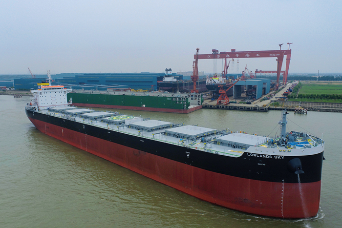 5月26日,揚子三井造船為日本船東建造的82300DWT散貨船“LOWLANDS SKY”輪(“樓蘭天空”,掛巴拿馬旗)順利交付離廠。