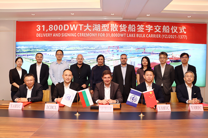 保加利亞國(guó)家航運(yùn)公司(NAVIBULGAR)執(zhí)行董事Alexander Kalchev先生、航運(yùn)租賃部經(jīng)理Katya MilevaMutafova女士、CLO Vasil Atanasov先生及現(xiàn)場(chǎng)監(jiān)造組項(xiàng)目經(jīng)理Nikolay Nikolov先生,工銀金租航運(yùn)金融部副總經(jīng)理寇光超先生,DNV江陰經(jīng)理史勇林先生,我集團(tuán)副總經(jīng)理兼揚(yáng)子三井總經(jīng)理宋書(shū)明先生,揚(yáng)子三井CFO上山淳一先生、副總經(jīng)理陳國(guó)強(qiáng)先生及總經(jīng)理助理中尾慎一先生等代表出席參加了該輪簽字及命名儀式。