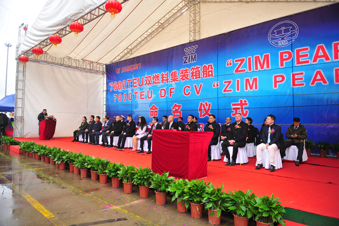 2月21日,我集團(tuán)與SEASPAN、ZIM公司共同為新船舉行了隆重的命名儀式。命名人伍穎嫻女士,SEASPAN公司董事長(zhǎng)/總裁兼首席執(zhí)行官陳兵先生,SEASPAN公司首席商務(wù)官李堃先生,ZIM公司總裁兼首席執(zhí)行官Eli Glickman先生,ZIM公司執(zhí)行副總裁兼首席運(yùn)營(yíng)官David Arbel先生,DNV集團(tuán)高級(jí)副總裁兼大中華區(qū)主席Norbert Kray先生,以及我集團(tuán)董事長(zhǎng)任樂(lè)天先生、集團(tuán)副總經(jīng)理兼新?lián)P子造船總經(jīng)理杜成忠先生、集團(tuán)副總經(jīng)理周科偉先生、集團(tuán)副總經(jīng)理吉宏飛先生等領(lǐng)導(dǎo)和嘉賓共同出席了命名儀式。