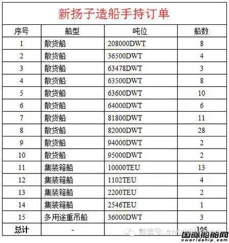 據(jù)國(guó)際船舶網(wǎng)了解,揚(yáng)子江船業(yè)2014年全年的新船訂單為41艘,訂單總額共計(jì)18億美元。此外,包括2艘10000TEU集裝箱船、2艘35000DWT散貨船和2艘2700TEU集裝箱船備選訂單延遲至2015年。