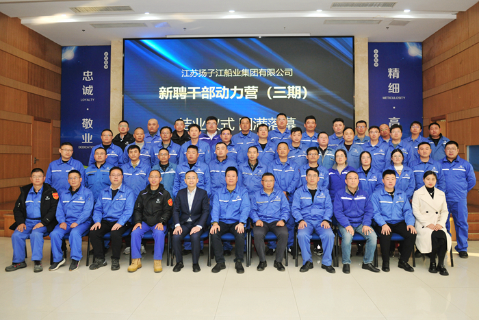 Recently, the graduation ceremony of Phase 3 Power Camp for Newly Hired Cadres of Yangzijiang Shipbuilding Group was held in the Multi-functional Hall of the New Yangzi Office Building. The program lasted for 7 months, and 36 newly-recruited management cadres at the assistant section chief level in the past two years participated in the training.