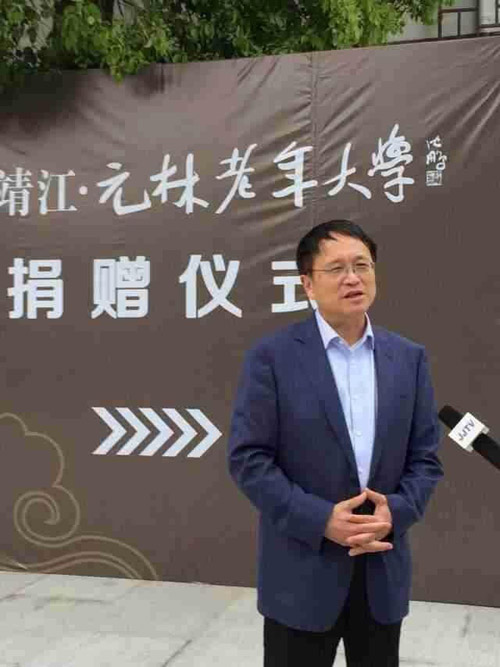 The university for the elderly in Jingjiang was set up in the afternoon on 25th April, and the Director of CPP of Jingjiang City,Mr Bing Ni, the CPPCC Chairman MrJinghua Qian, the Honorary Chairman of Charitable Funds, Mr Yuanlin Ren, and the Chairman, Mr Jiangyuo Liu all attended this donation ceremony.